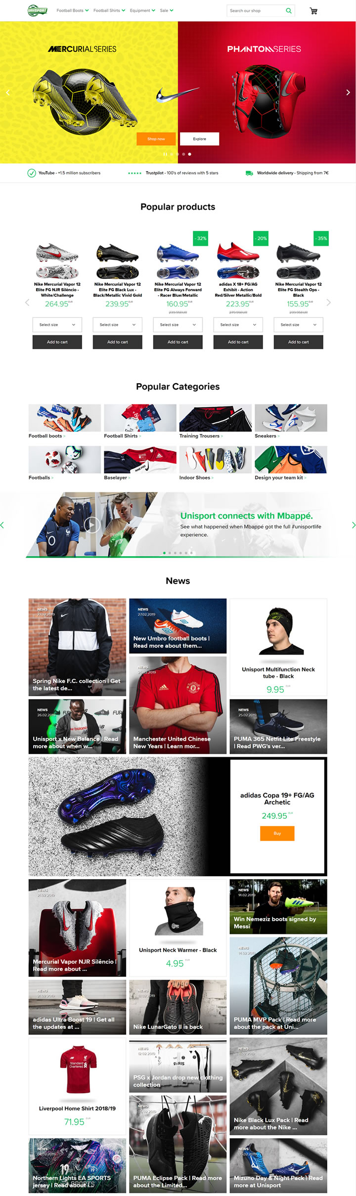 Unisport成立于1995年,目前在線擁有10000多種產品。消費者可以購買與足球有關的所有東西,如足球衫、足球鞋和其它足球相關產品。