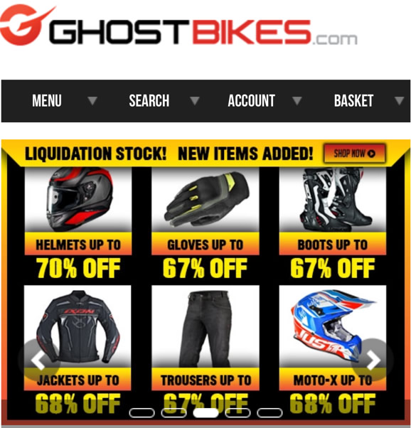 GhostBikes.com獲取所有摩托車和摩托車越野賽服裝、頭盔、靴子、手套、配件和零件。我們屢獲殊榮的團隊提供優質服務,價格優惠,交付快捷,服務范圍廣泛,可提供多種品牌選擇!
