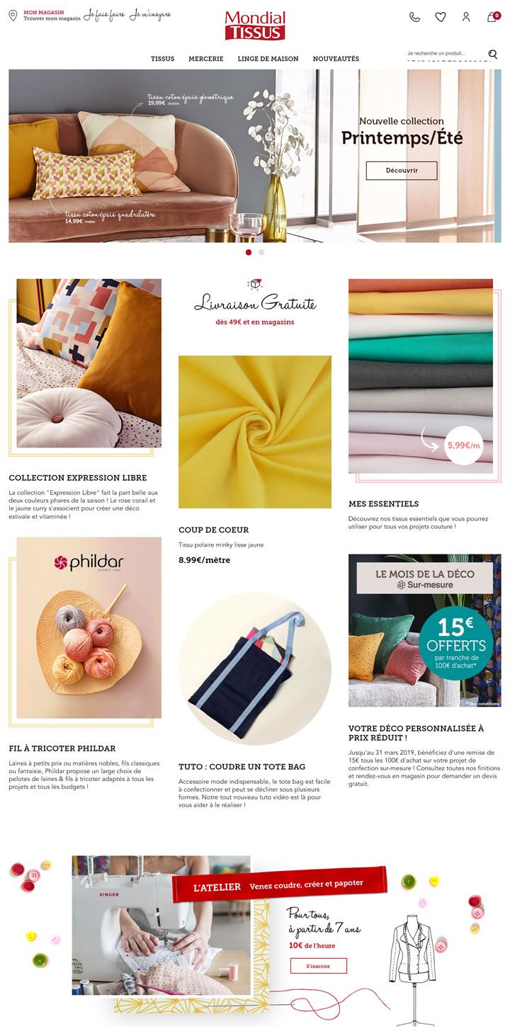 Mondial Tissus網站是一個由80家商店組成的不斷增長的網絡電子商務渠道。