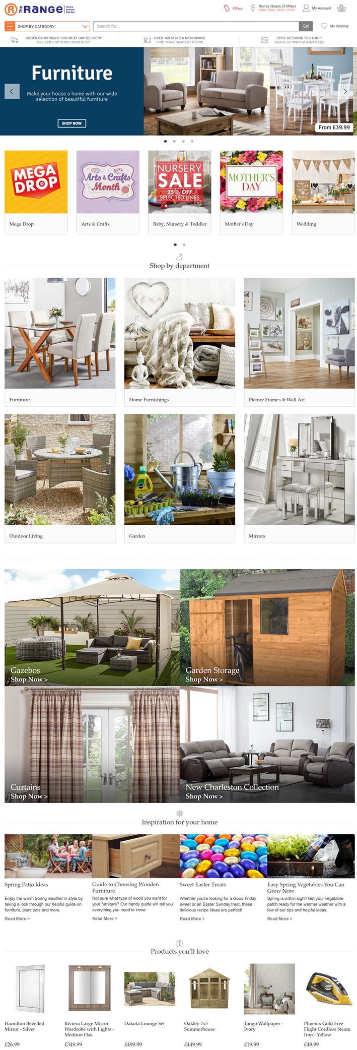 自1989年在Plymouth的Billacombe路開設第一家店以來,The Range現已成為英國發展最快的零售商。我們在全國擁有超過150家商店,我們在16個不同的部門庫存超過65000種產品,從家居用品和家具到DIY和藝術用品。我們的理念始終是以最具競爭力的價格為客戶提供優質產品,匯集您所需的一切,讓您擁有一個美麗的家園。