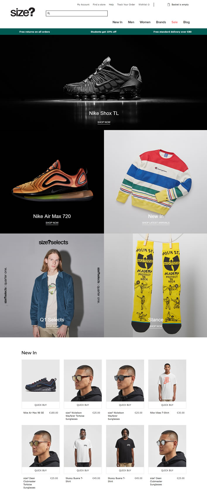 size?愛爾蘭官方網(wǎng)站:https://www.sizeofficial.ie