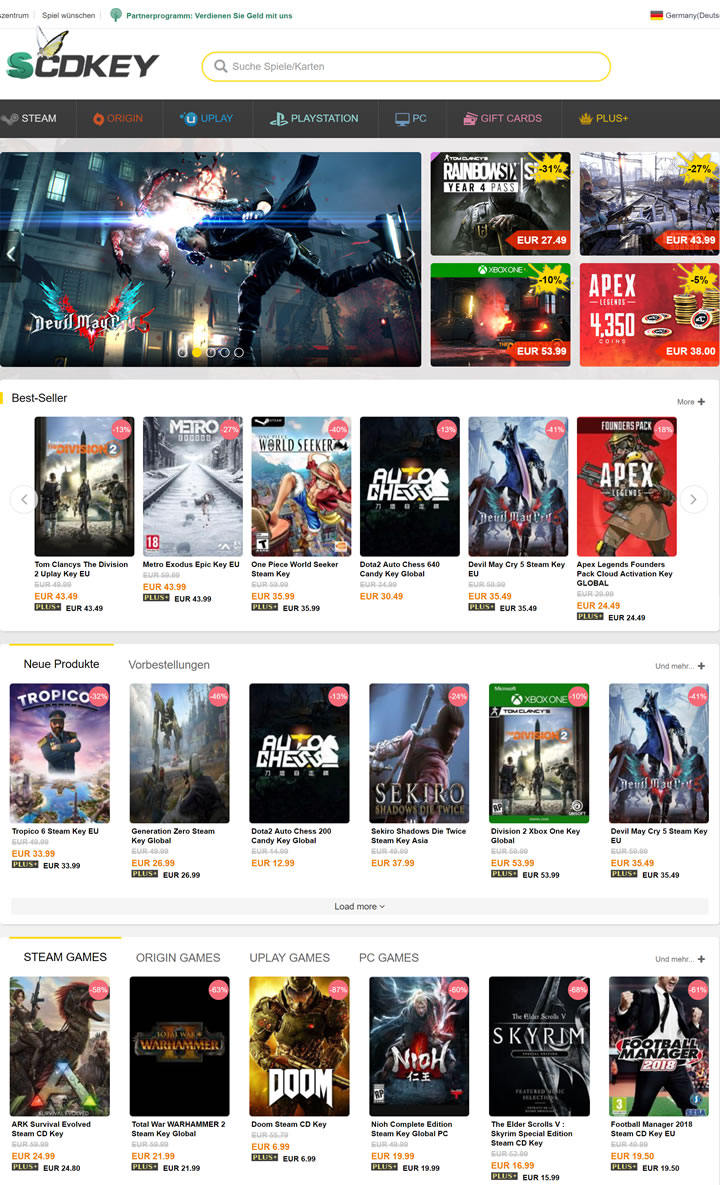 SCDKey是全球領先的數字游戲市場,為Steam、Origin、Uplay、Xbox Live、PSN等購買打折游戲密鑰!