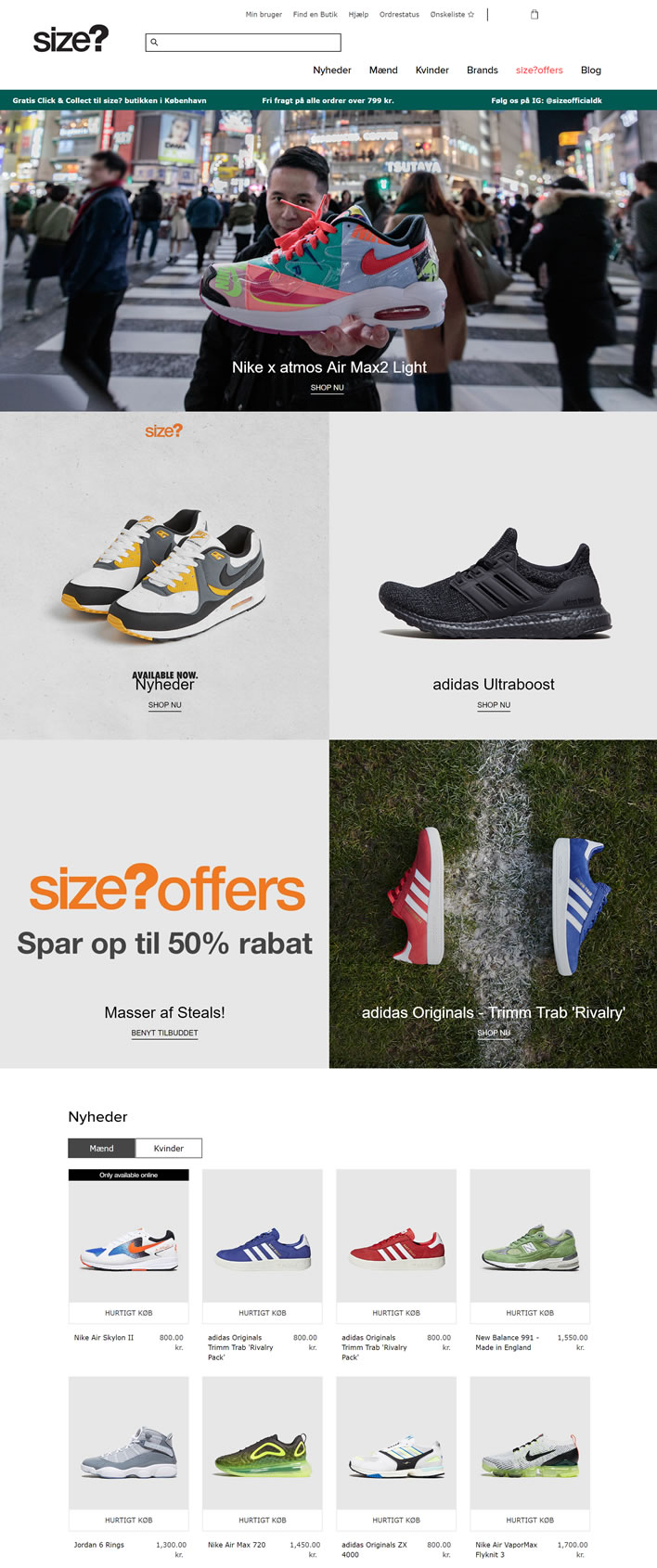 size?是英國倫敦的球鞋精品店,銷售的產品主要是各大品牌的知名系列,包括耐克的AJ系列、阿迪、亞瑟士等鞋款,是引流球鞋界潮流的先行者。近年來上升非常迅速有很多的線下實體店,經常還有限量款的發售,也經常會有一些聯名款式出現,很受街頭潮流愛好者的喜愛。