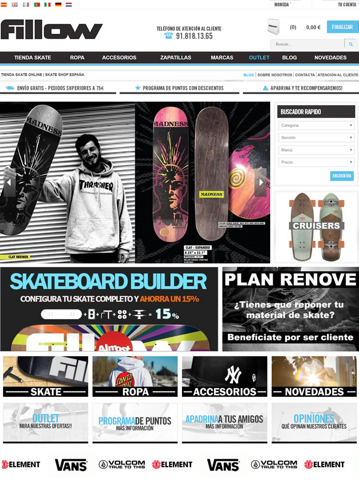 西班牙最大的在線滑板和街頭服飾商店。100多個品牌:Element、Thrasher、Zero、Powell、Bones。保證最低價格。