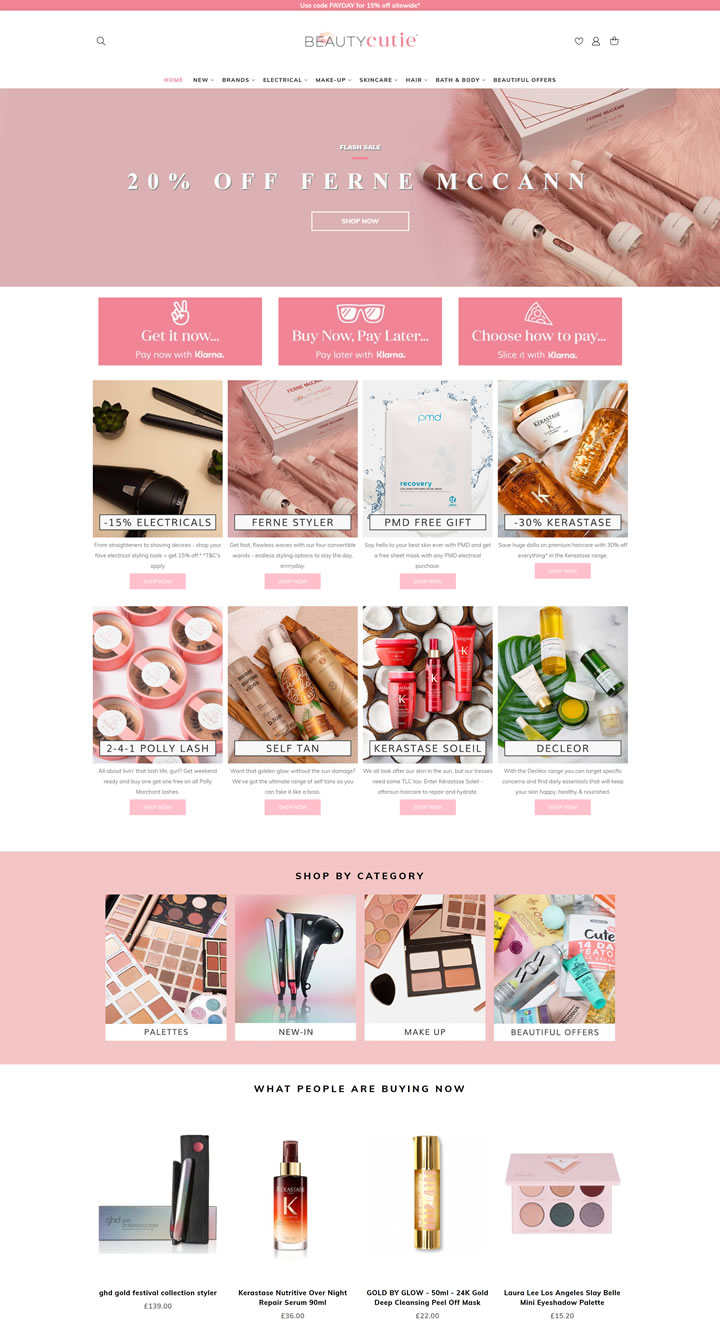 Beauty Cutie提供一系列頂級發型和美容品牌,如Brushworks、EOS, Ardell、Cloud Nine、Fake Bake、GHD、Kerastase,以及自己的品牌名人和insta合作,如Fern Mccann和Polly Marchant。