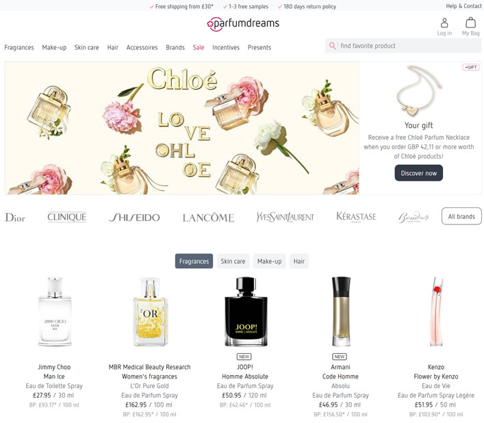 在Parfumdreams,您會發現各種各樣的香水和護理產品,價格低廉。超過30英鎊的訂單免費郵資。