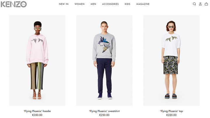 KENZO是由高田賢三在法國創立的品牌,結合了東方文化的沉穩意境、拉丁民族的熱情活潑,大膽創新的融合了繽紛色彩與花朵,創造出活潑明亮、優雅獨特的作品。KENZO自1970年起開始在時尚界嶄露頭角,并于1993年加入LVMH集團,自此KENZO旗下的服裝、飾品、餐具以及香水均受到廣大的歡迎。