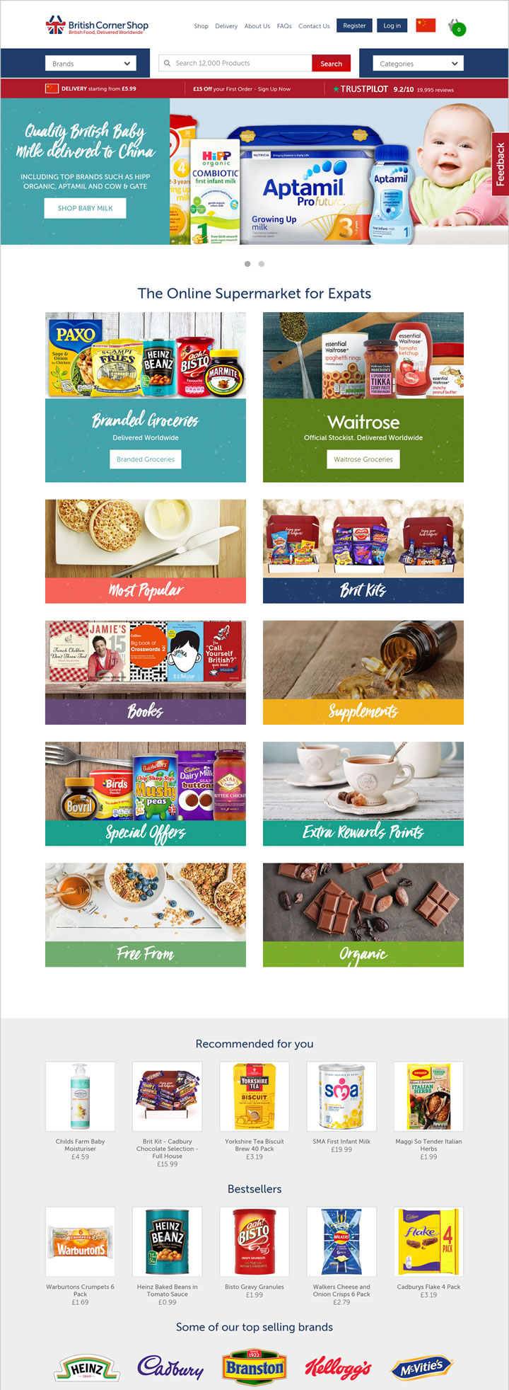 為英國外籍人士提供的英國食品購物。British Corner Shop是一家在線英國超市,提供全球送貨服務。