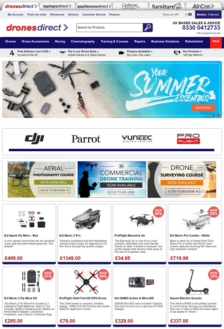 在線訂購無人機或在店內購買。我們提供金融和次日送貨服務,以及約克郡無人機展廳的現場無人機演示。