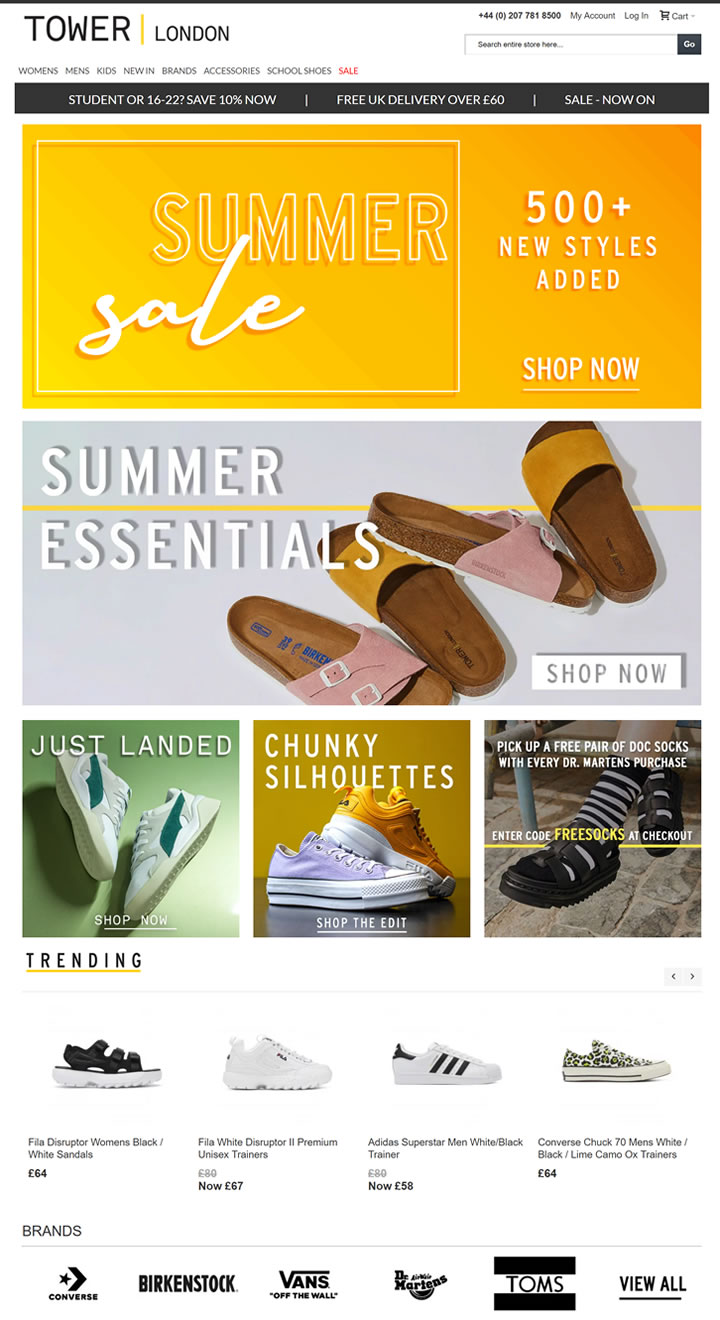 TOWER London為女士、男士和兒童提供時尚鞋類、品牌靴子和時尚鞋。超過60英鎊免費英國送貨。