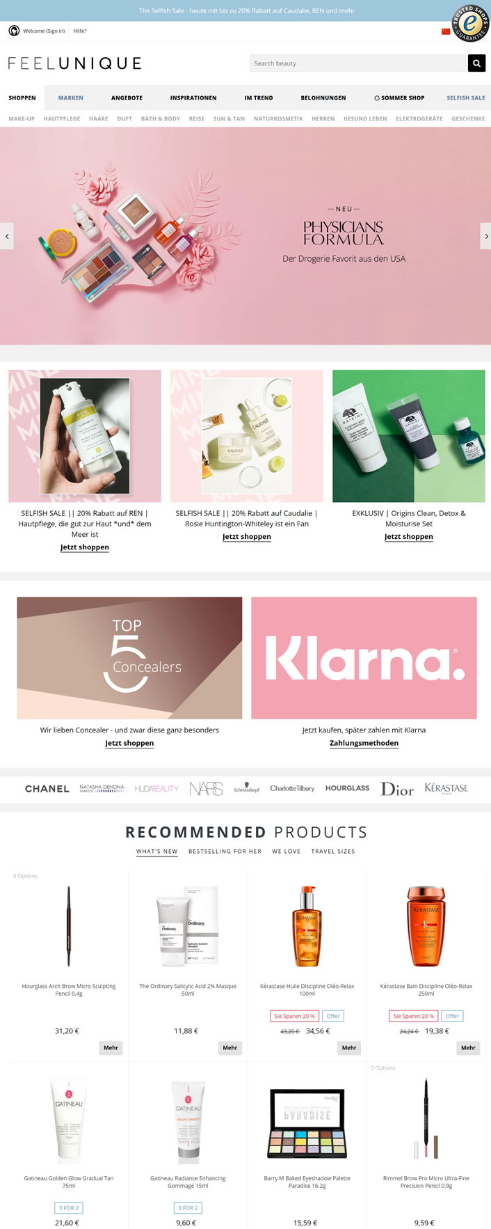 Feelunique德國(guó)官方網(wǎng)站:https://de.feelunique.com