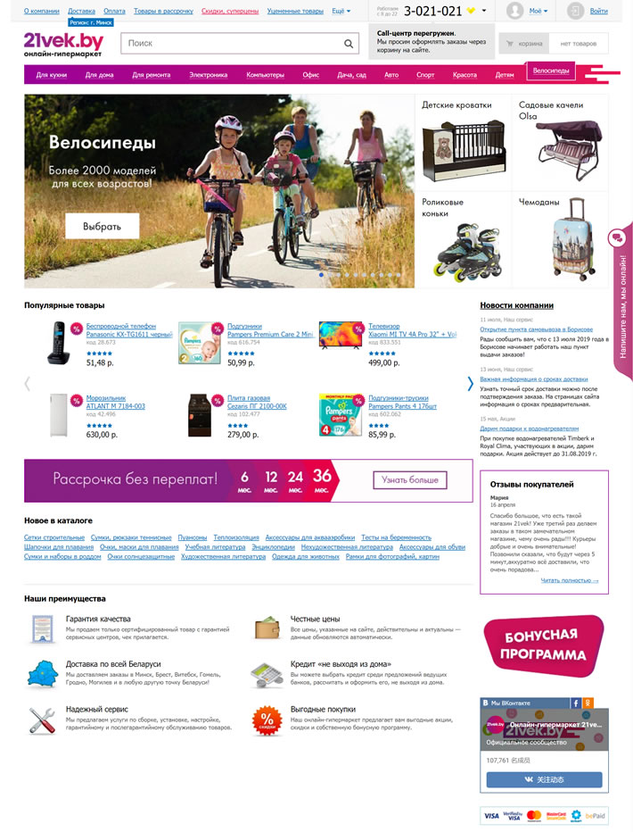 21vek.by網上商店是白俄羅斯的一個在線市場,出售家用電器、電子產品、家庭用品等。我們網上商店的服務始終處于領先地位,產品的優惠價格將令您驚喜。