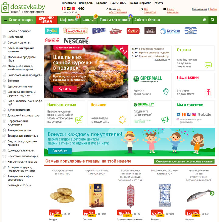 在線大型超市e-dostavka.by – 食品和工業產品送到家和辦公室。