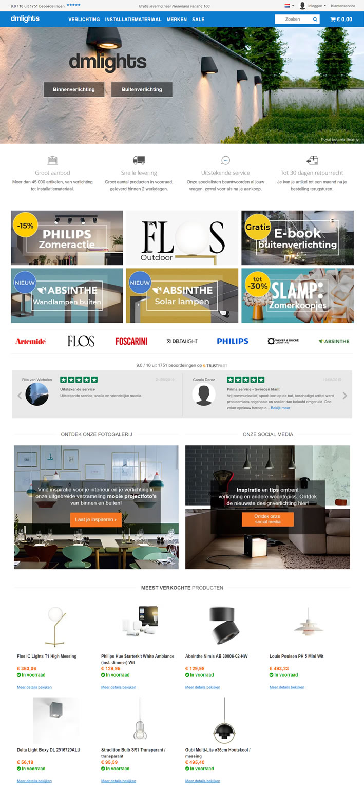 dmlights是最大的照明和配件在線商店之一。由于我們的產(chǎn)品種類繁多,我們可以從地板到天花板最佳地照亮每個(gè)房間。你會(huì)發(fā)現(xiàn)著名的設(shè)計(jì)品牌,如Flos、Artemide、Foscarini、Tom Dixon和Louis Poulsen。此外,年輕的新興照明品牌,如Graypants、&tradition、LZF和Lightyears也有機(jī)會(huì)與我們合作。