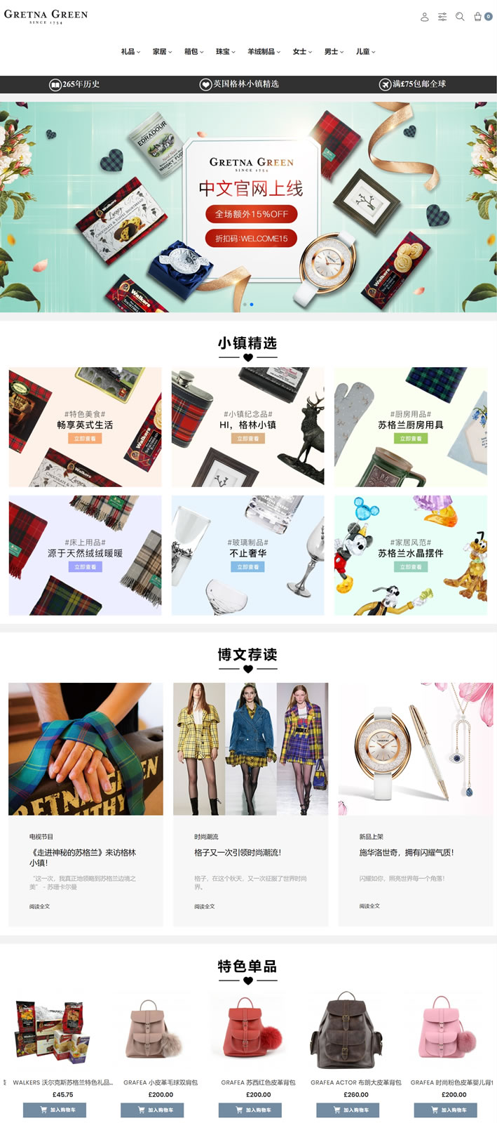 格林小鎮(Gretna Green)是蘇格蘭著名的逃婚小鎮,也是世界上最有名的婚禮舉辦地之一!現蘇格蘭格林小鎮中文商城已經上線,上千款精選產品:英國皇室御用酥餅、特色羊毛羊絨圍巾/披肩/毛毯、純天然蜂蜜及果醬等供您選擇!關注格林小鎮,帶您品位265年悠久歷史,見證矢志不渝的愛情!一起領略純粹英式浪漫!