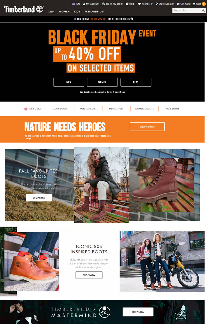Timberland (添柏嵐)是全球領先的戶外品牌, 旗下有Timberland、Timberland PRO、SmartWool、Timberland Boot Company及Howies®等品牌,通過提供高質量、講究細節的工藝制品,來滿足不同戶外環境下的需求。添柏嵐的產品透過北美洲、歐洲、亞洲、拉丁美洲、南非及中東的百貨公司、專賣店和Timberland直營店營銷全球。添柏嵐在承諾對股東,雇員和消費者利益和責任的同時,做到對自然環境負責。