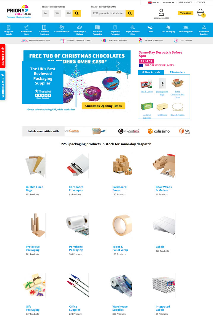 英國最好的包裝供應(yīng)商,當(dāng)日發(fā)貨,訂單金額超過150英鎊免費送貨。