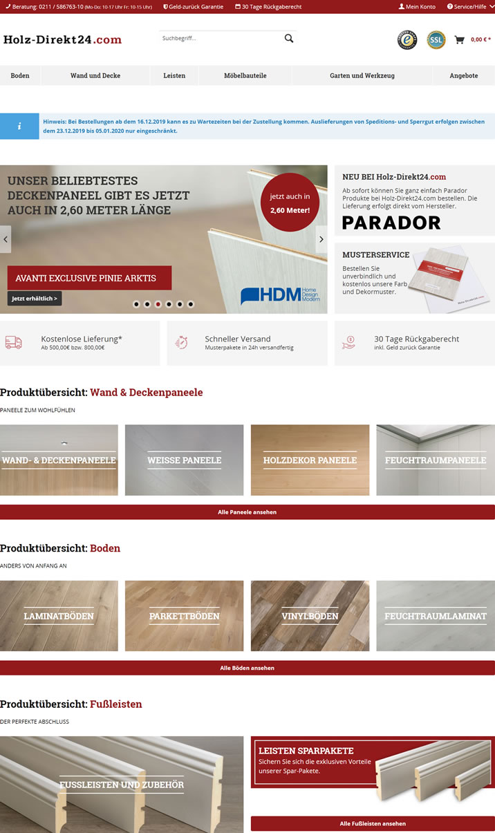 Holz-direkt24.com是專業木制品經銷商,提供各種高質量的層壓板、墻面和天花板外墻、裝飾條、地板以及各種家具部件。