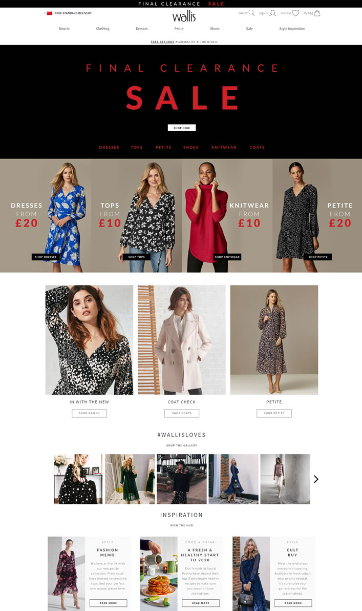 Wallis是英國的女裝零售商。該品牌在英國和愛爾蘭共和國擁有134家商店和126個特許經營權。Wallis是Arcadia集團的子公司,也是Philip Green擁有的眾多公司之一。