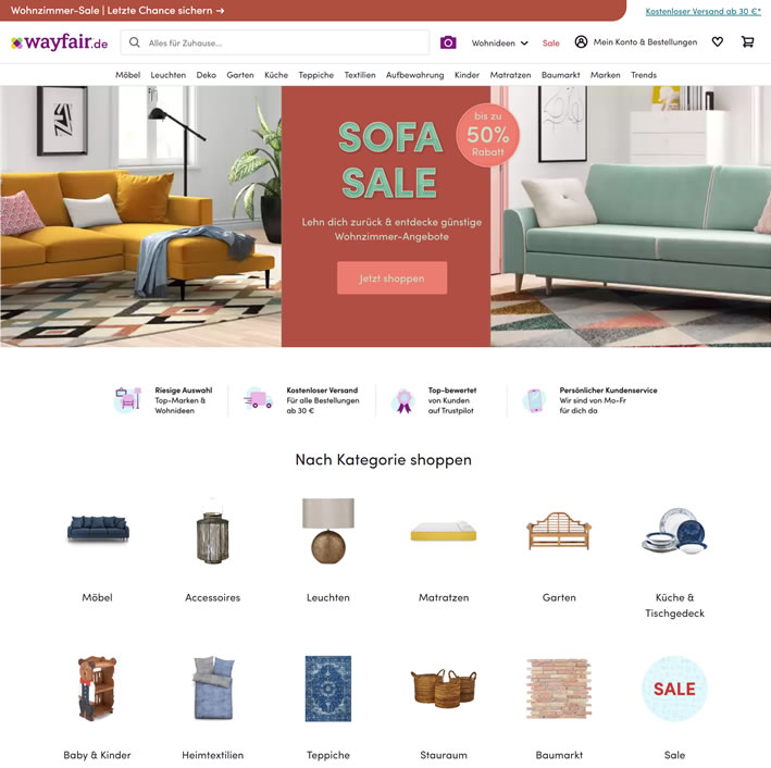 Wayfair及其姊妹品牌(Joss&Main、All Modern和Birch Lane)為所有家庭提供一站式服務,包括各種風格和預算的家具和裝飾。該品牌擁有7000多家供應商的700多萬件產品,獨家銷售,最高可享受七折優惠,數百萬件產品可免費送貨。