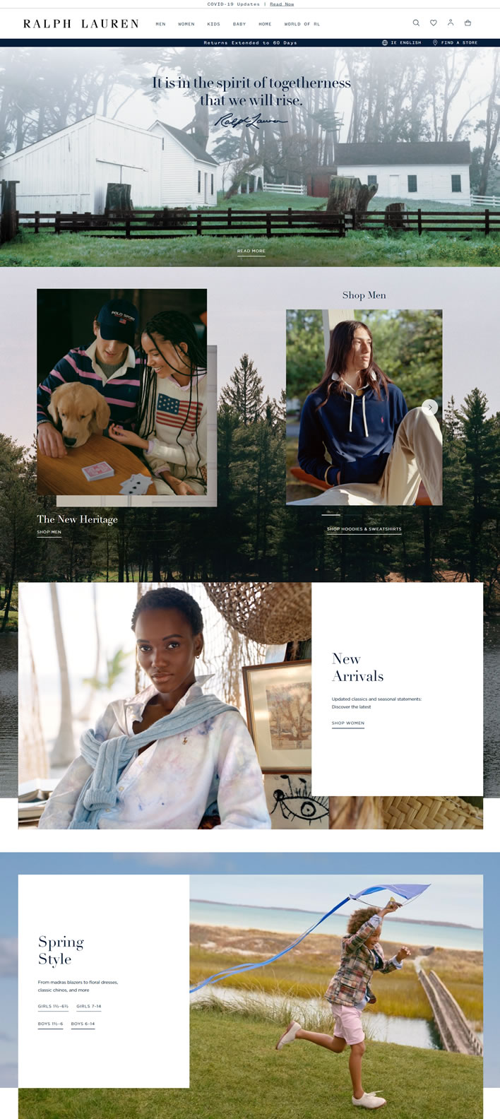 自1967年以來,拉夫勞倫Ralph Lauren在日益增多的產品、價格區間和市場上不斷建立獨特的品牌形象。拉夫勞倫Ralph Lauren的產品囊括男女服飾、配飾和香水系列以及童裝和家居,是倍受認可的消費者品牌家族之一。