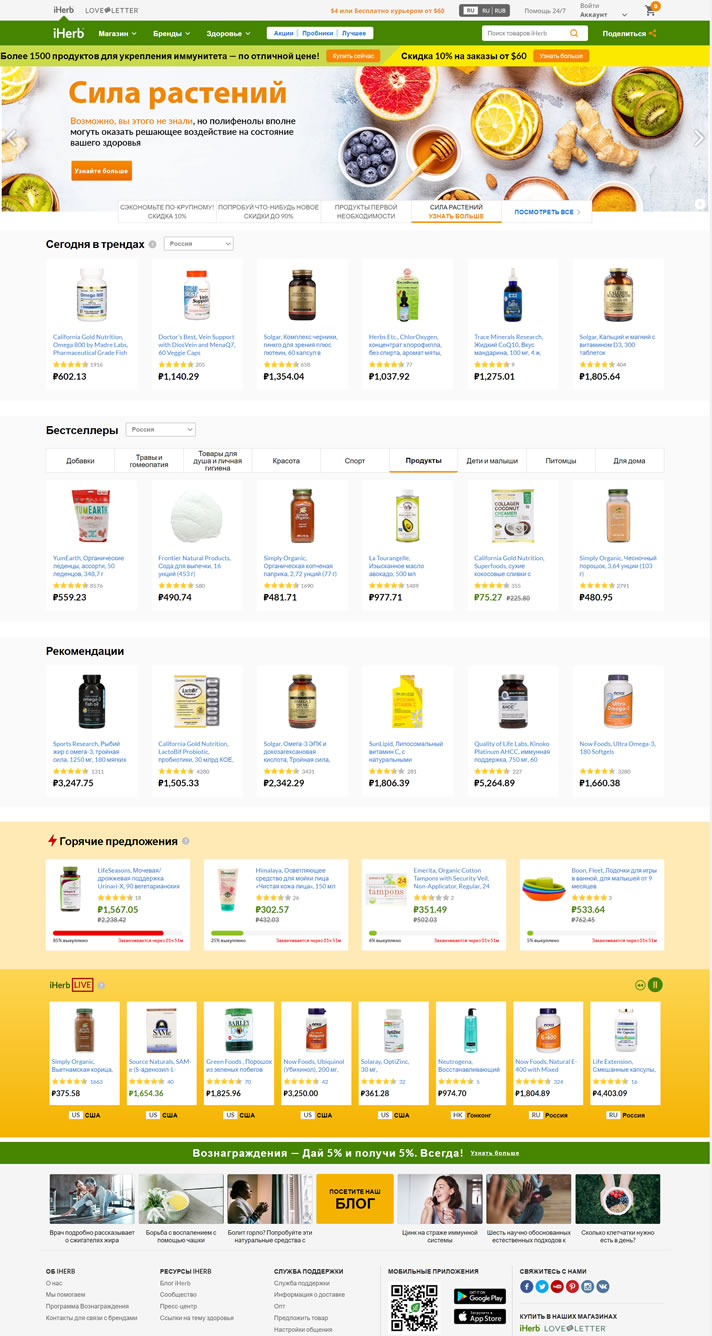 iHerb是一家位于美國的電商平臺,向全世界150多個國家提供高性價比的天然健康產品,在加州和肯塔基州擁有兩個經過GMP認證的現代化的綠色環保倉庫,超過1200個品牌和30000種商品。