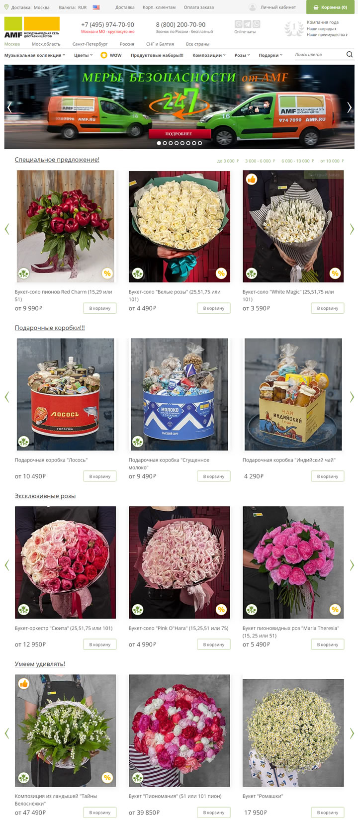 AMF是全球領(lǐng)先的鮮花遞送公司之一!在莫斯科、俄羅斯及世界任何城市提供鮮花配送。我們將滿足您的每一個想法!優(yōu)質(zhì)的服務(wù)!裝備特殊的車輛全天候提供花束。