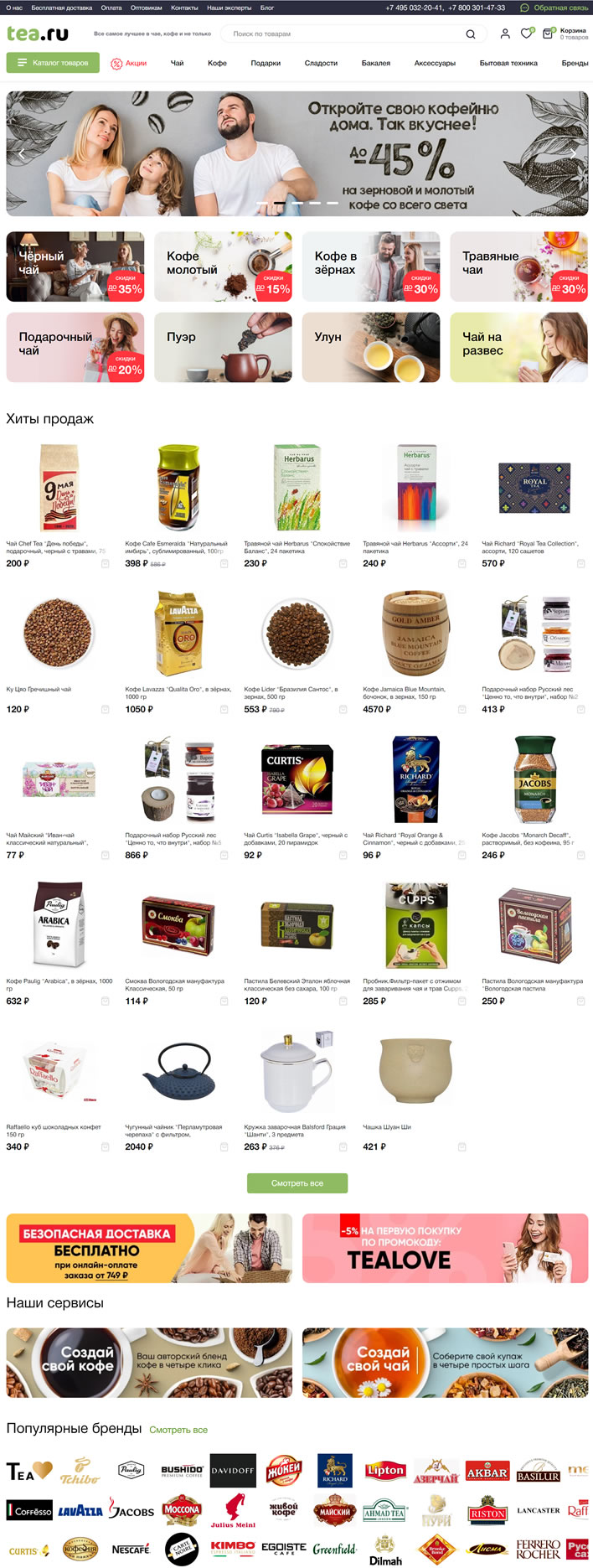 俄羅斯茶、咖啡和其他健康天然產品的在線商店。在我們的網站上,您可以購買知名品牌的茶和咖啡以及稀有品種。我們直接與制造商合作,而無需中介,請仔細檢查每個目錄項。Tea.ru是莫斯科最大的茶葉專賣店之一,提供各種各樣的咖啡、甜點和禮物。我們的產品目錄有5000項。喝茶,喝咖啡,盡享美好,為自己和親人創造幸福時刻。