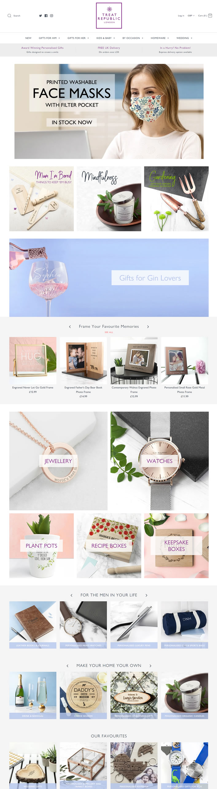 Treat Republic是一個禮品和生活方式的品牌,在每種場合都提供以設計為主導的個性化和搶眼禮物。通過我們獨特的個性化禮物,我們已經幫助超過500000名客戶慶祝和紀念人生中最寶貴的時刻。