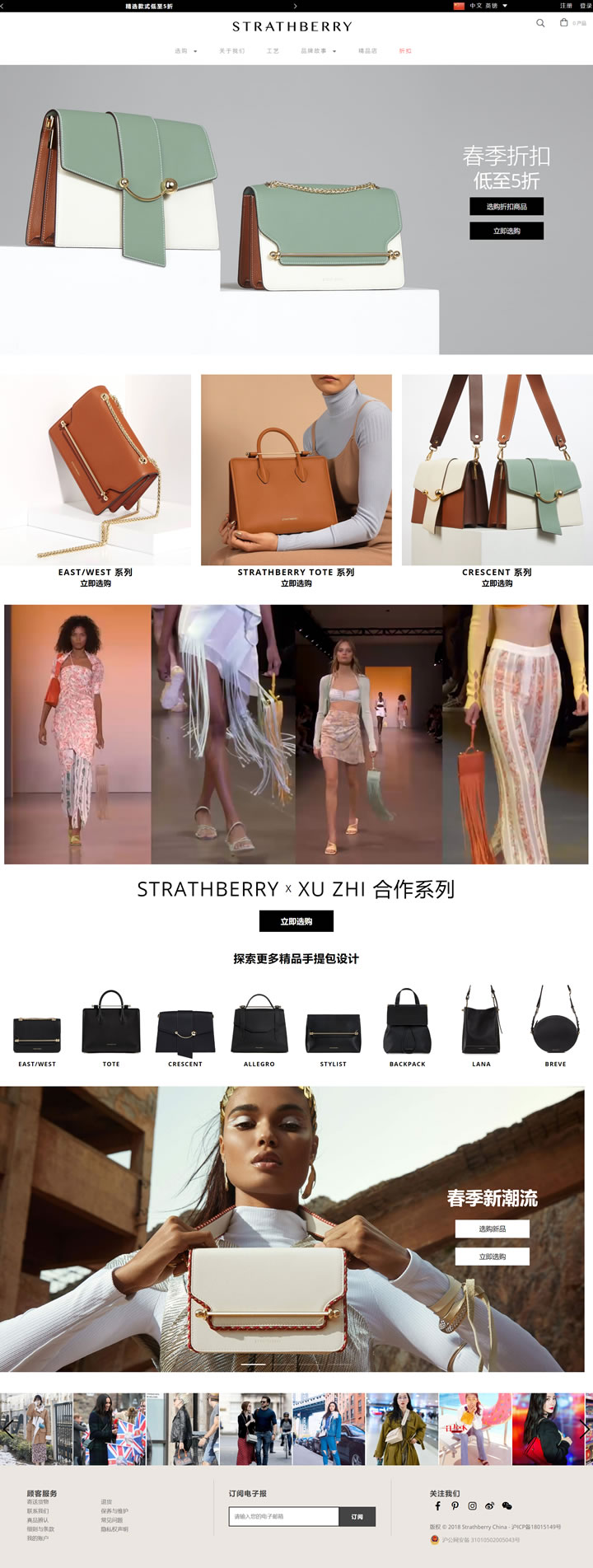 源于愛丁堡的奢侈品牌Strathberry蘇貝瑞,由Guy和Leeanne Hundleby創立。西班牙高級工匠手工打造,以其簡單的線條與標志性的金屬杠桿成就了品牌的奢華風格。該品牌推出的皮具均采用極簡設計和高檔皮革,以歐洲頂級手工工藝精制而成。2015年Strathberry在華銷售超越預期,占全球總銷量30%以上。
