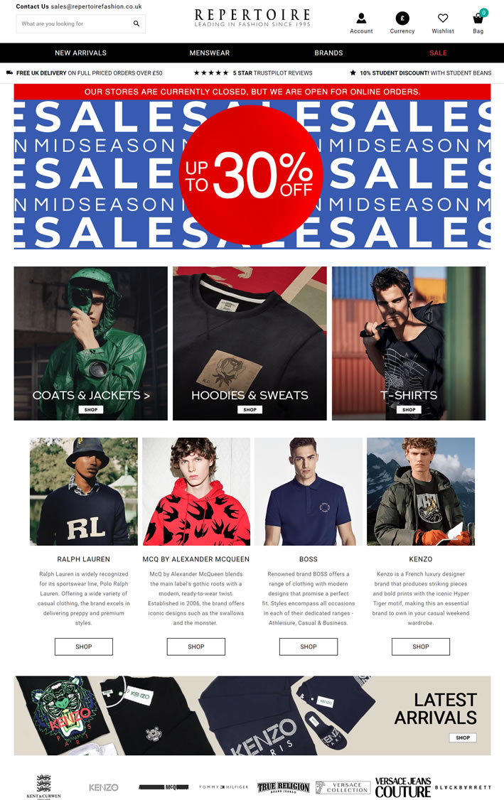 Repertoire Fashion過去20年來一直是英國男裝設計師服裝的領先獨立零售商之一。Repertoire在東南部設有五家商店,為您提供經典品牌和奢侈品牌無與倫比的精選商品,包括BOSS、Armani、Kenzo、Neil Barrett、Stone Island(僅限商店)等。