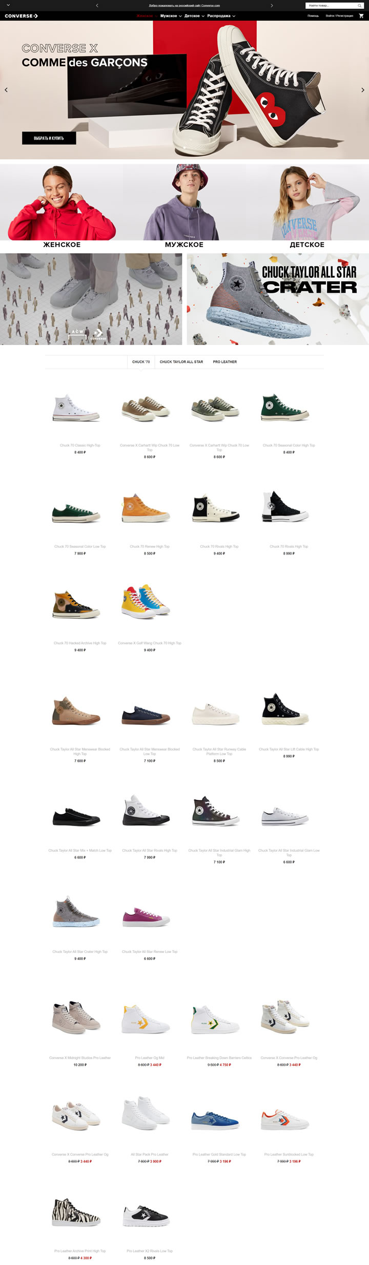 Converse是世界著名的鞋類、服裝和配飾制造商。ru.converse.com網站是Converse在俄羅斯的官方在線商店。