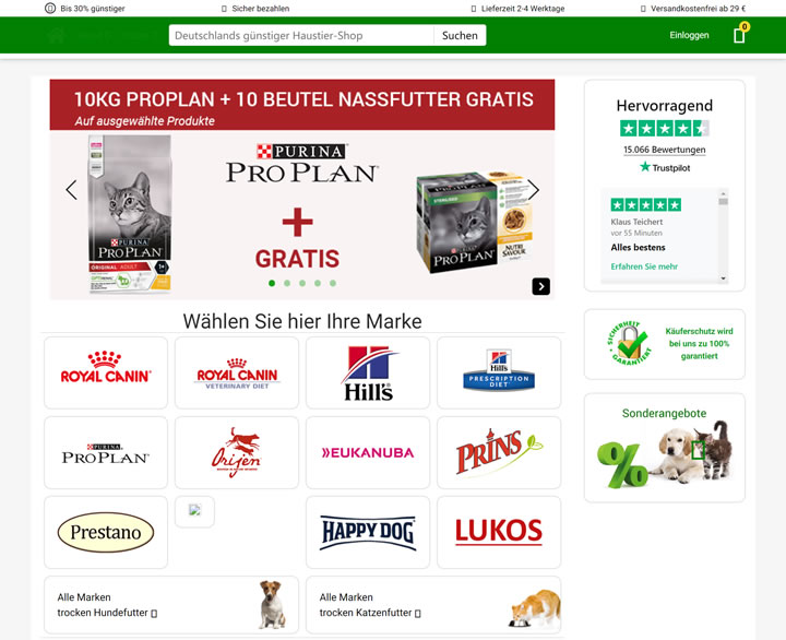 德國便宜的寵物店。在Brekz為您的狗和貓訂購所有頂級品牌的產(chǎn)品,價(jià)格可便宜30%。