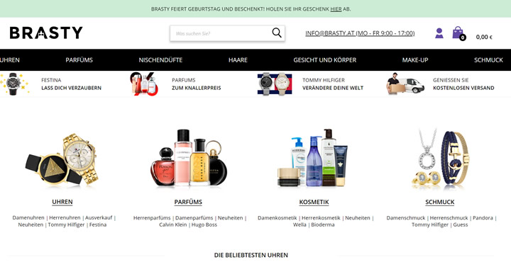 奧地利手表、香水、化妝品和珠寶購物網站:Brasty at