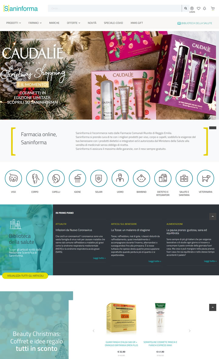 Saninforma是從雷焦艾米利亞市政藥房誕生的電子商務。Saninforma用最適合臉部、身體和頭發的產品來照顧您,并通過營養產品和補充劑滿足您的健康需求。獲得衛生部的授權,無需處方即可銷售藥品。