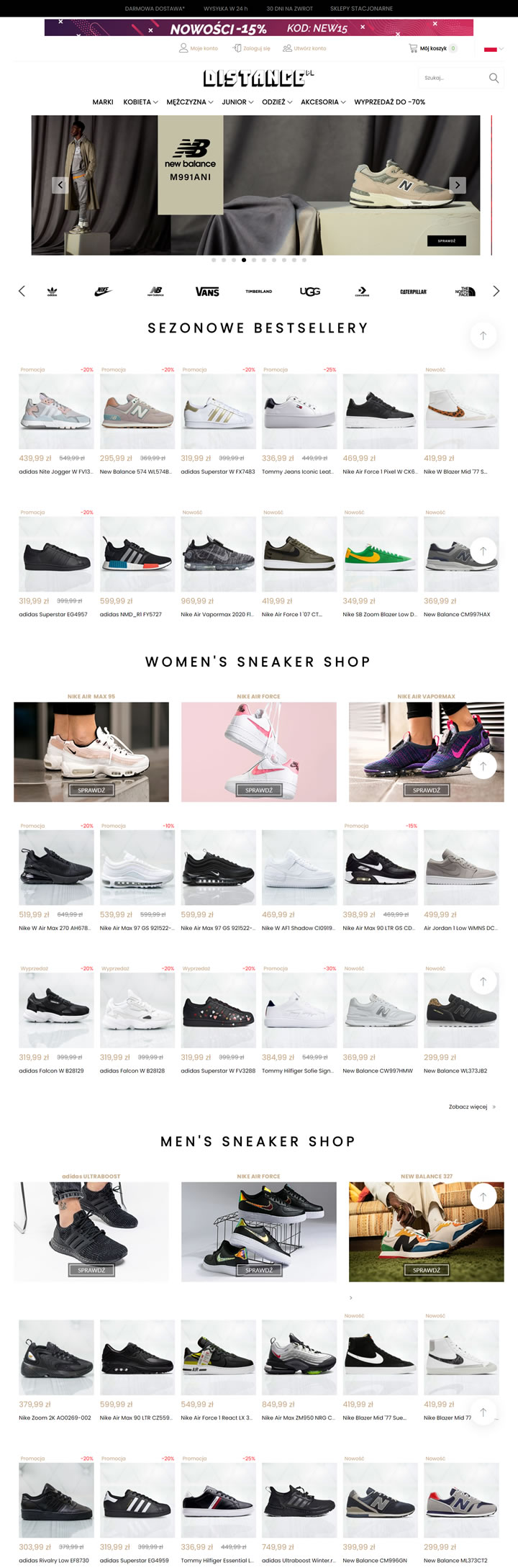 Distance.pl商店-運動鞋商店發展最快的網絡。我們提供由專業人士從以下品牌中挑選的鞋和服裝,這些品牌包括:Nike、New Balance、adidas、Tommy Hilfiger、Local Heroes、Calvin Klein、Puma、Fila、Jordan Brand、Vans、Timberland、UGG、Emu、The North Face。查看時尚舒適的運動鞋。