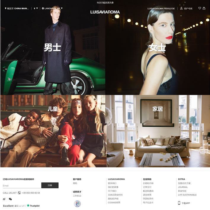 LUISAVIAROMA.COM是意大利頂級奢侈品電商,每月擁有超過五百萬訪客。在我們的網站上你可以找到超過600位頂尖時尚設計師和新秀天才設計師的最新系列,商品配送全球。LUISAVIAROMA于1930年誕生于意大利佛羅倫薩,我們的同名概念店至今仍坐落在佛羅倫薩市中心。LUISAVIAROMA自1999年起便開始線上銷售,如今90%的銷售均來自線上。在佛羅倫薩總部,來自15個不同國家的200人致力于以9種語言制作和維護LUISAVIAROMA.COM。