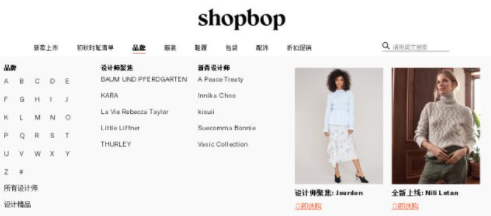 Shopbop的定位是輕奢網站,品牌種類包含很多,有很親民的小眾牌子,也有比較高端的設計師品牌。