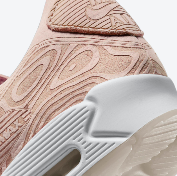 美國運動品牌Nike即將出售的這款Nike Air Max 90選用了自然裸色調,上邊印有各式各樣的地形花紋,典雅復古,而在鞋后跟、側面以及舌頭上則印有NIKE專屬徽標,不僅如此,在半透明的外底上配上了同色品牌鞋墊以及白色鞋帶和中底,整體設計給人眼前一亮的感覺。
