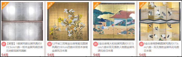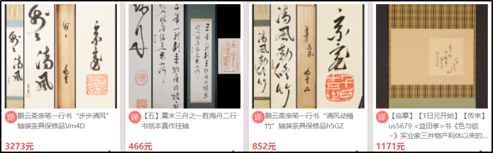 在日本煤爐售賣的中國掛軸有很多,其中包含書法字畫,水墨畫,扇面畫,屏風畫偶爾還會有賣家上架一些中國的大家之作。