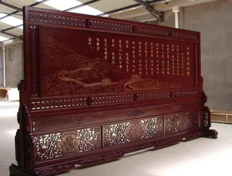 屏風于今時今日的應用仍然很廣,受限于樓層房的鋼筋水泥,使屏風露面有所減少,但在很多酒樓,平房樓,辦公樓,都有著屏風的身影出現,除去它是一實用家具的身份,很多時候,它還是一件精美的藝術品。在屏風營造空間,會有靜謐,舒適溫和之感。