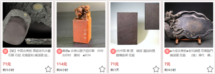日本對中國的崇拜價值與中日的千年來往,使得日本積累大量中國的硯臺,有大量個人因為各自的原因,將古件硯臺上架到日本煤爐,雅虎等地二手電商平臺,類似于國內的閑魚。