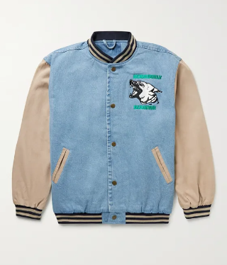 徽標貼花刺繡牛仔和 Drill 校服夾克