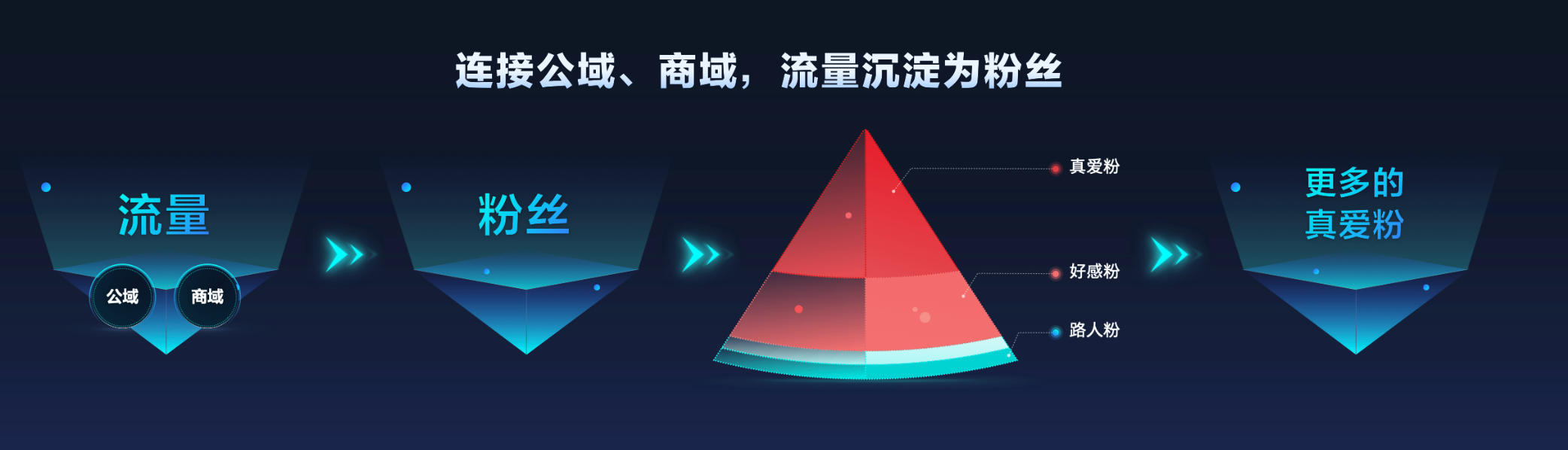 在用戶沉淀與觸達方面,企業號2.0將粉絲進行“真愛粉、好感粉、路人粉”的精細分層,讓企業識別每一個粉絲的親密狀態,制定差異化的溝通策略,結合客戶關系管理系統(CRM)和數據管理平臺(DMP)能力,全新升級訂閱、私信、群聊場景的觸達與轉化能力,整合所有能高效觸達用戶的通道,不斷提升核心粉絲的占比,讓企業擁有更多真愛粉。而后,粉絲經營得好,能夠反向促進公域和商域,實現流量分發的提權提效以及流量采買的精準有效。