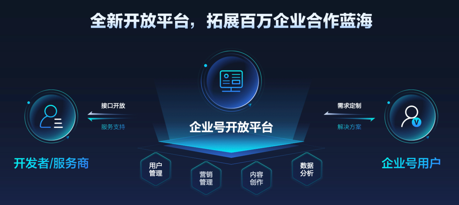 8000家服務商開放共建:通過企業號開放平臺,開放包含數據分析、內容創作、營銷管理、用戶管理在內的多個場景接口,引入有贊、蟬媽媽等服務商共建企業服務。“領航計劃”將公開誠募8000家服務商合作伙伴,用技術幫企業鋪好前行路基。