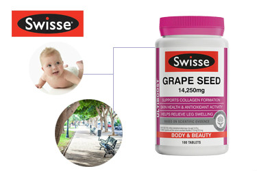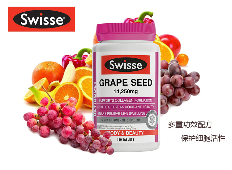 Swisse 澳洲葡萄籽精華天然抗氧化,富含維生素C和血橙,有利于皮膚健康以及膠原蛋白產生。