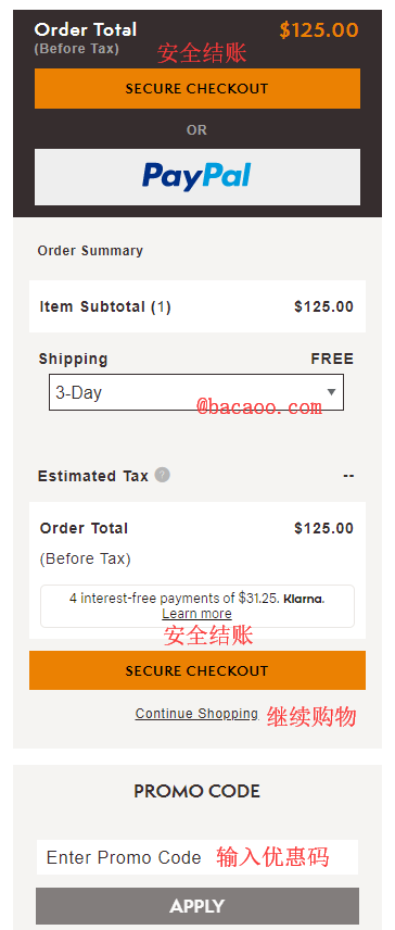 5、點擊SECURE CHECKOUT進入填寫收貨地址以及選擇運輸方式頁面;