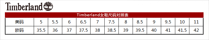 Timberland女鞋尺碼對照表: