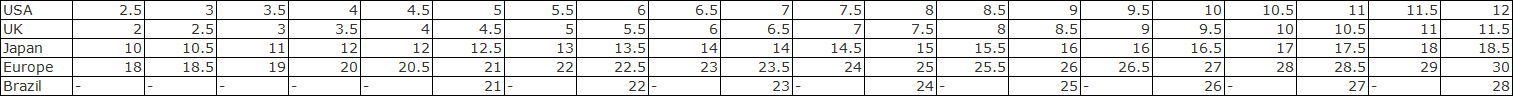 美國天木蘭Timberland官網尺碼對照表——Youth Footwear Sizing (Approximate age 6 - 10 years)