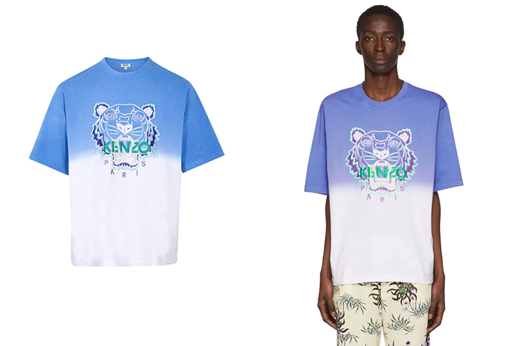 Kenzo Blue & White ‘Dip Dyed Tiger’ T-Shirt
